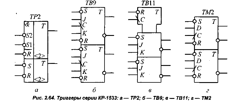Рисунок 4.42-Триггеры серии 1533: а –ТР2; б –ТВ9; в –ТВ11; г –ТМ2