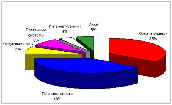 На рисунке 3 представлена структура платежей за покупки, совершённые через Интернет.