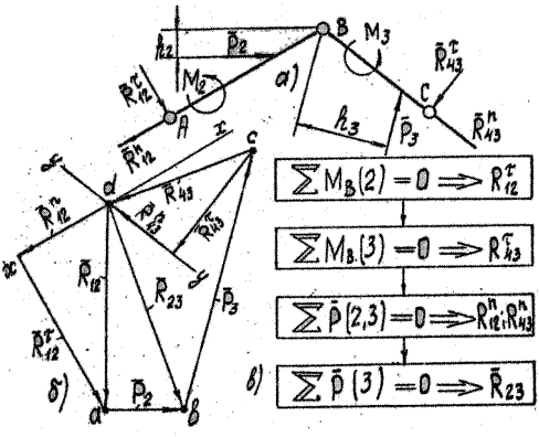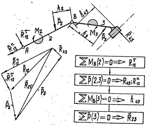 Замечание. В некоторых случаях целесообразно реакцию в КП разложить на две составляющие, одна из которых направлена вдоль звена, вторая перпендикулярно звену.