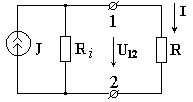 У идеального источника тока gi = 0 и J = I.