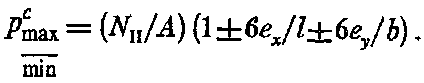 В тех случаях, когда точка приложения равнодействующей внешних сил смещена относительно обеих осей инерции прямоугольной подошвы фундамента, как это показано на рис. 10.14, давление под ее угловыми точками находят по формуле