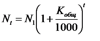 Nt – численность населения через t лет (на прогнозируемую дату);