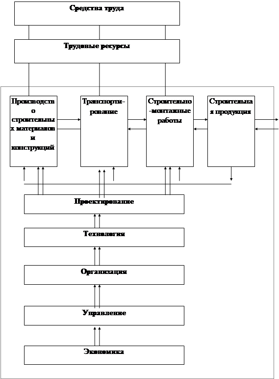 в) между строительным производством в целом и органами хозяйственного управления, финансовыми организациями и другими элементами инфраструктуры инновационного процесса.