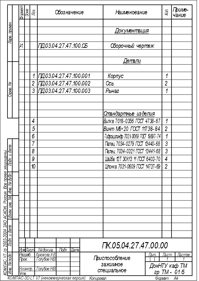 | ДОДАТОК Д Специфікація на пристосування для контролю | |
