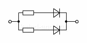 Аналогичная ситуация складывается и при последовательном соединении полупроводниковых диодов (для увеличения обратного напряжения). K диодам последовательной цепочки будет приложена разная часть общего напряжения (из-за различий ВАХ). B итоге по крайней мере одно самое слабое звено этой цепочки будет повреждено, a схема перестанет работать. Для выравнивания падений напряжения на цепочке из диодов параллельно им включают резисторы равного сопротивления (обычно от 100 до 1000 кОм). Чем ниже величина сопротивления, тем равномернее будет распределение напряжений, однако, как и в предыдущем случае, включение дополнительных резисторов в определенной мере ухудшает выпрямительные свойства сборки диодов.