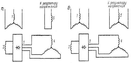 На статоре возбудителей находится 3-фазная обмотка 1 и обмотка возбудителя 5.