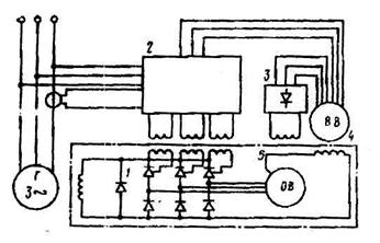 1. Основной возбудитель ОВ, питающий обмотку возбуждения ОВГ через управляемый трехфазный выпрямительный мост 1;