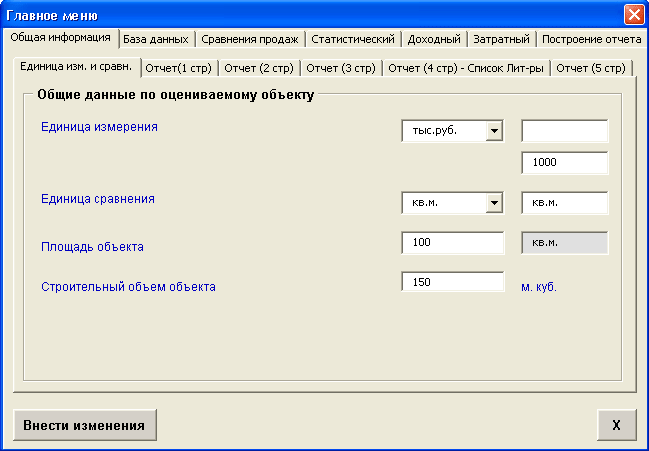 - Общая информация – здесь вносится общая информация об объекте оценки, оценщике и другие данные, необходимые для корректного построения отчета.