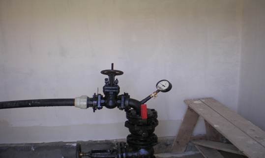 Рис. Белокаменский пост, скважина 1-рэ, самоизлив, замер уровня ПВ по манометру при закрытой задвижке.
