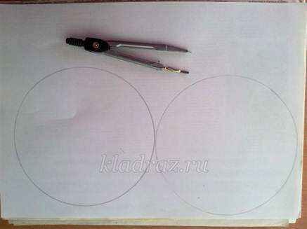 1. Разметим на изнаночной стороне белой бумаги два круга радиусом 7 см