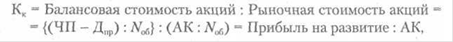 Коэффицент капитализации (устойчивости экономического роста) выражает соотношение между балансовой и рыночной стоимостью акций: