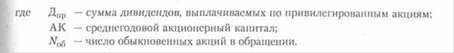 Прибыль на одну акцию (доход на акцию) = (ЧП – Див. по привилегир. акциям) / Число обыкнов. акций.