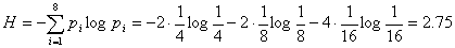 Итак, мы получили оптимальный код. Длина этого кода совпала с энтропией. Данный код оказался удачным, так как величины вероятностей точно делились на равновероятные группы.