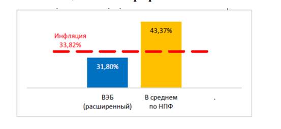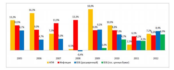 Рис.1. Средняя невзвешенная доходность НПФ, инвестиционных портфелей ВЭБ и инфляция