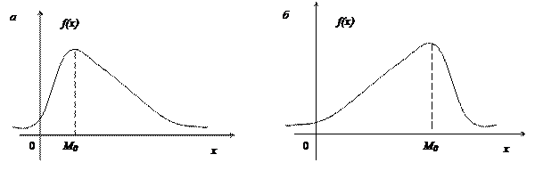 , то длинная часть кривой распределения расположена слева от вершины (рис.12,б).