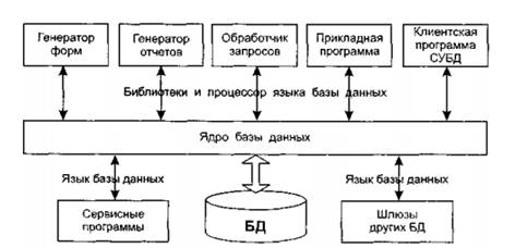 • ядро, обеспечивающее управление данными во внешней и оперативной памяти, а также протоколирование изменений;