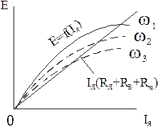 при достигнутой скорости вращения с линией, характеризующей падение напряжения