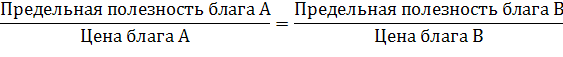 Отношение предельно полезности блага к его цене должно быть одинаковым для всех благ.