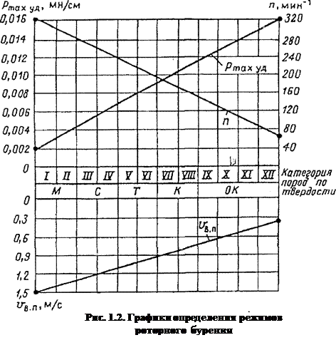 Для удобства проектирования режимов бурения можно использовать графики, приведенные на рис. 1.2, а также данные, приведенные в табл. 1.9.