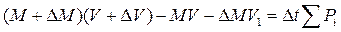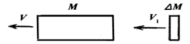 Положим, масса непрерывно увеличивается. Пусть за время Δt к массе М присоединяется масса ΔМ, имеющая абсолютную скорость V1 (рис. 1.1). По теореме об изменении количества движения имеем: