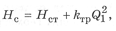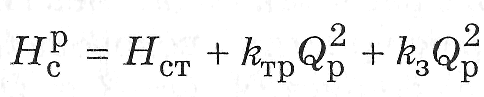 где kр — сопротивление сети при расходе (QT – Qп); kп — сопротивление перепускной линии; Qп — расход жидкости через перепускную линию.