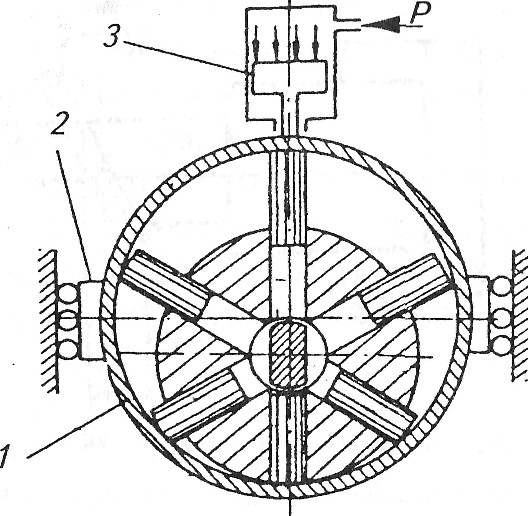 1 — корпус колеса; 2 — направляющие; 3 — силовой цилиндр