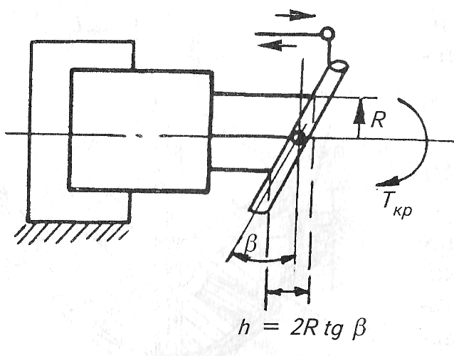 Из выражения следует, что изменение угла наклона приводит к изменению хода поршня и, как следствие, к изменению величины подачи насоса.