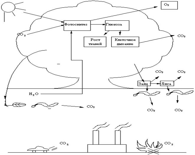 т). Этот углерод принимает участие в экологическом кругообороте. Жизнь на Земле и газовый баланс атмосферы поддерживается относительно небольшим количеством углерода (5-10