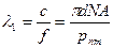 В типичном случае λ = 1.55 мкм, NA = 0.14 и диаметр одномодового волокна равен 6-10 мкм.