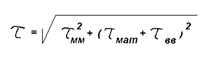 τΣ = [τмм2 +(τмат + τвв)2]1/2