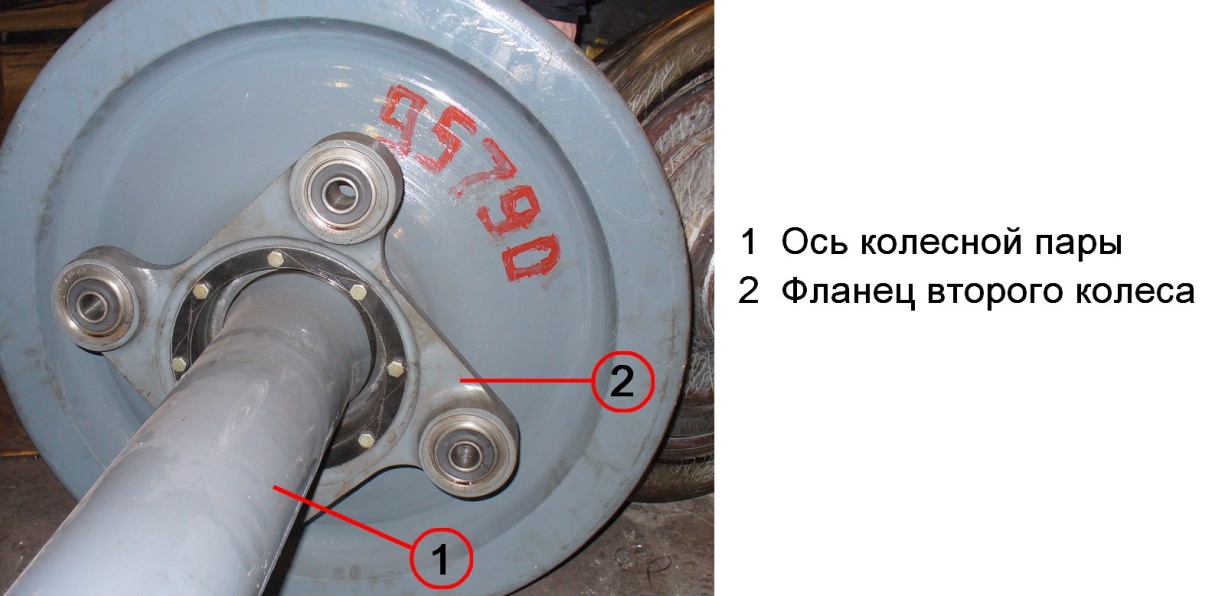 Фланец насаживается на ось колесной пары. Кольцо, состоящее из двух половин, свободно установлено между осью и выходным валом.