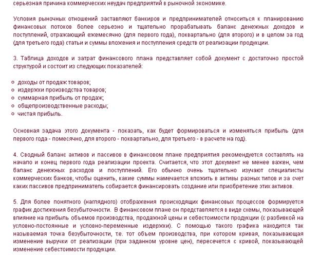 В процессе составления финансового плана определяют источники и объем собственных финансовых ресурсов предприятия, организации (прибыль, амортизация и др.); изучают возможность и целесообразность привлечения финансовых ресурсов за счет выпуска ценных бумаг, получения кредитов, благотворительных взносов и т.д.; выбирают оптимальные для конкретной ситуации формы образования и использования фондов денежных средств, взаимоотношений с бюджетом, банками, вышестоящими органами, своими работниками; устанавливают рациональные пропорции распределения финансовых ресурсов на внутрихозяйственные нужды: расширение и перевооружение производства, материальное стимулирование, удовлетворение социальных потребностей членов трудового коллектива или вложение в другие предприятия и организации (долевое участие в формировании уставных капиталов, покупка ценных бумаг и другие операции на финансовом рынке); определяют целесообразность и экономическую эффективность планируемых капиталовложений; выявляют внутренние резервы производства и повышения его рентабельности на базе имеющихся материальных и трудовых ресурсов, производств, мощностей, а также перспективы внедрения достижений НТП и совершенствования организации и управления производством. Основная форма финансового плана - баланс доходов и расходов.