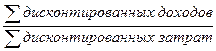 - индекс доходности дисконтированных инвестиций (ИДД) - отношение суммы дисконтированных элементов денежного потока от операционной деятельности к абсолютной величине дисконтированной суммы элементов денежного потока от инвестиционной деятельности.