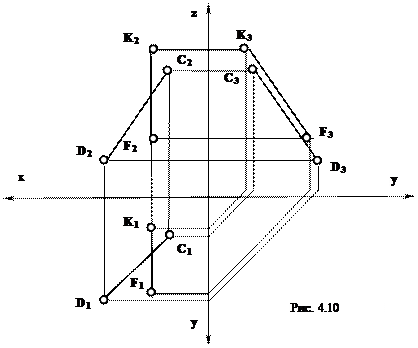На рис. 4.10 изображены две скрещивающиеся прямые, хотя их горизонтальные и фронтальные проекции пересекаются, а профильные — параллельны между собой.