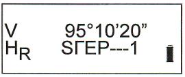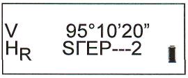 | Навести зрительную трубу на цель, расположенную близко к горизонту на расстоянии примерно 100 м. Нажать «V%». Данные для первой точки будут сохранены. На дисплее появится «STEP – 2» | V% |