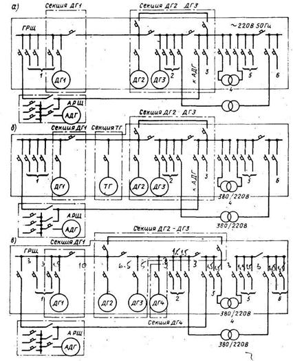 в ) СЭЭС с четырьмя ДГ и одним АДГ( рис. 1.8, в ).