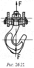 Болт нагружен внешней силой F (болт без предварительной затяжки), например, нарезанный участок крюка для подвешивания груза. Опасным является сечение крюка, ослабленное нарезкой (рис. 26.21). Из условия прочности на растяжение