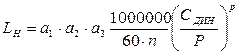 где LH – срок службы подшипника в часах, n – частота вращения вала мин-1.
