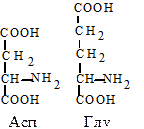 4. Дикарбоновые аминокислоты. Глутаминовая (Глу, E) - a-аминоглутаровая кислота и аспарагиновая кислота (Асп, D) -a-аминоянтарная кислота. Это наиболее распространенные аминокислоты белков животных организмов. Обладая дополнительной карбоксильной группой в радикале, эти аминокислоты способствуют ионному взаимодействию, придают заряд белковой молекуле. Эти аминокислоты могут образовывать амиды.