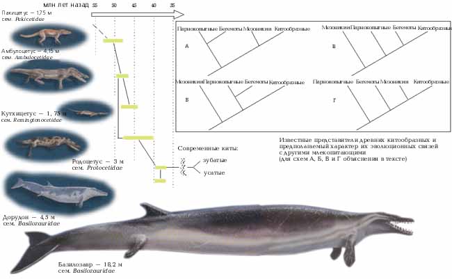 Эволюционная история китов – одного из самых специализированных отрядов млекопитающих – оставалась загадкой для биологов на протяжении большей части XX в. Составляя в 1945 г. на основе имеющихся палеонтологических данных систему эволюционных отношений между отрядами млекопитающих, Дж.Симпсон отметил практически полное отсутствие сведений по китообразным и поместил этот отряд независимо от других, связав его историю лишь с общим гипотетическим предком плацентарных.