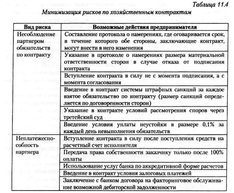 Наиболее часто применяющиеся приемы минимизации рисков по хозяйственным контрактам представлены в таблице 11.4