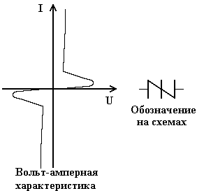 Рис.5.12. Обозначение и вольтамперная характеристика динистора.