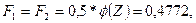 по таблице F1 = 0,5 ф (Z1) = 0,3413;