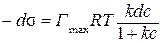 При малых концентрациях ПАВ расчет адсорбции по уравнениям Гиббса и Ленгмюра дает близкие результаты, т.е. правые части этих уравнений можно приравнять: