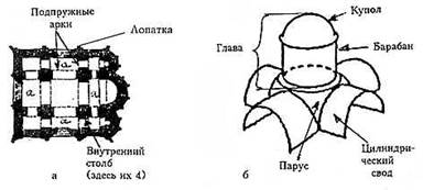 б) крестово-купольная система (сложилась еще в ранневизантийский период и получила широкое развитие в средневековой арх-ре)