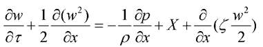 В подобных случаях говорят о модели с частично распределенными параметрами (по одной или двум осям координат). В качестве такой модели продолжим рассмотрение принятого выше примера - системы уравнений для движущегося потока жидкости. Уравнение движения для проекции на ось х имеет вид