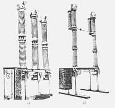 А вес масла 250 кГ, в то время как в маломасляных выключателях на те же параметры вес масла составляет всего 10 кГ. Относительно небольшое количество масла облегчает уход и ремонт.