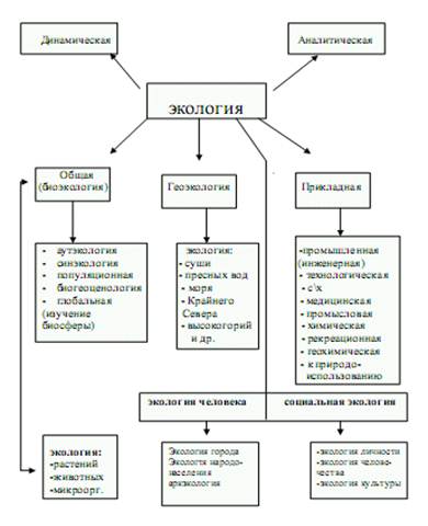 Экологию можно подразделить на три большие ветви: общую, частную (специальную) и прикладную.