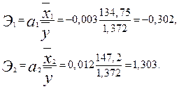 = 0,012 свидетельствует о том, что с ростом цены продукта на 1 руб. при фиксированном уровне расходов на рекламу объем реализации продукции увеличивается в среднем на 12,0 тыс. руб.