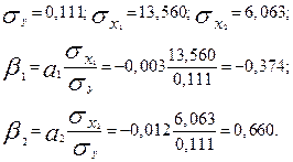 Для расчета бета-коэффициентов предварительно исчислим средние квадратические отклонения: